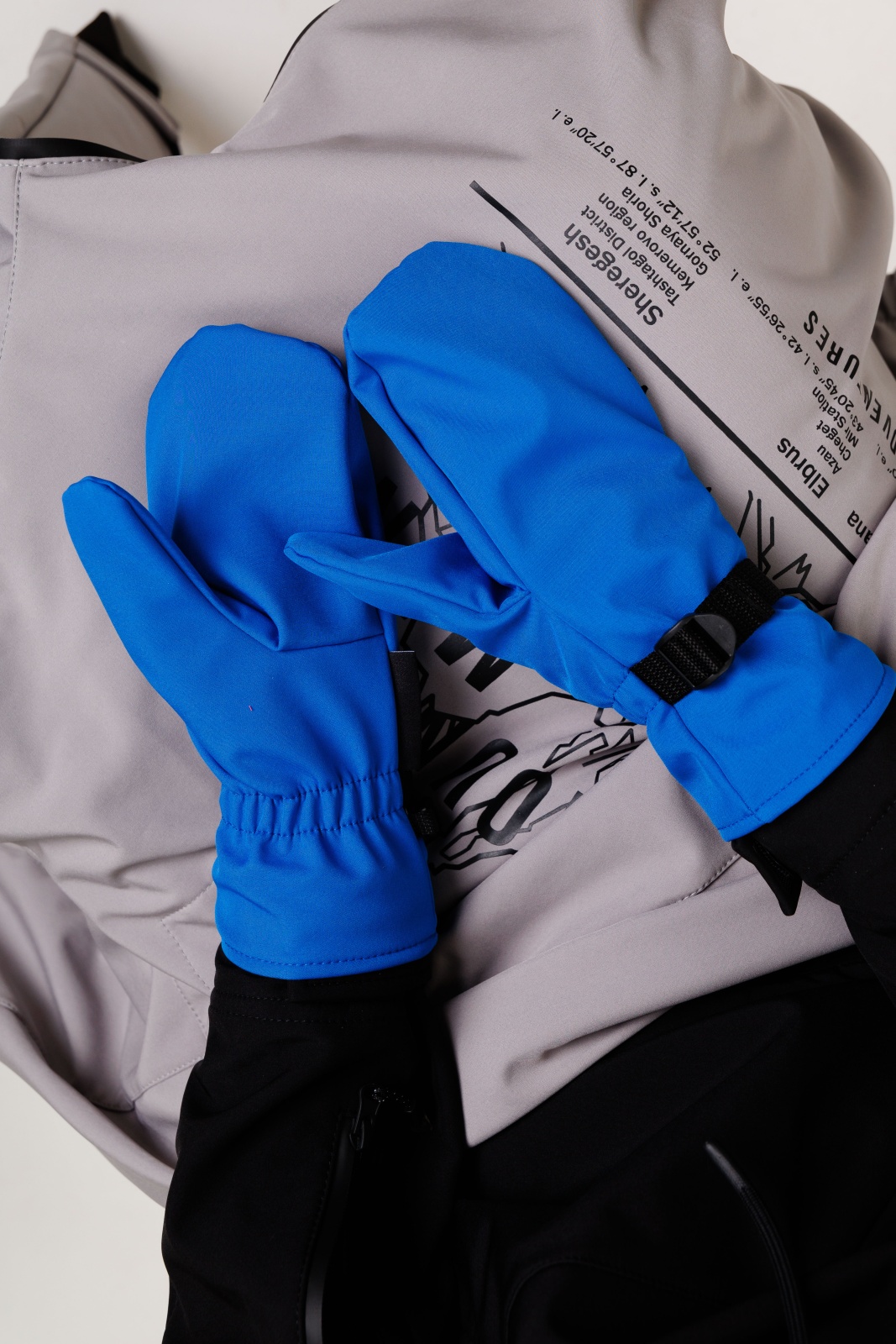 - Резинка и стропа на запястье: препятствуют попаданию снега внутрь варежек, обеспечивая дополнительную защиту.