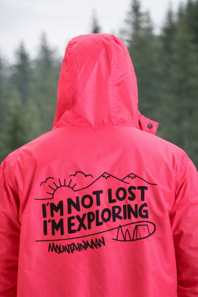 Плащ-дождевик  "Я не потерялся. Я исследую" (розовый) купить в Казани – Mountain Man