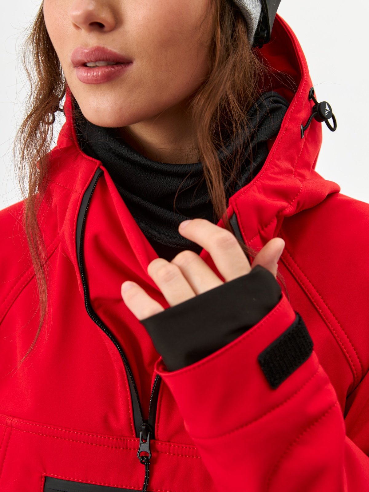 • Капюшон с регулировкой объёма подходит для ношения со шлемом.