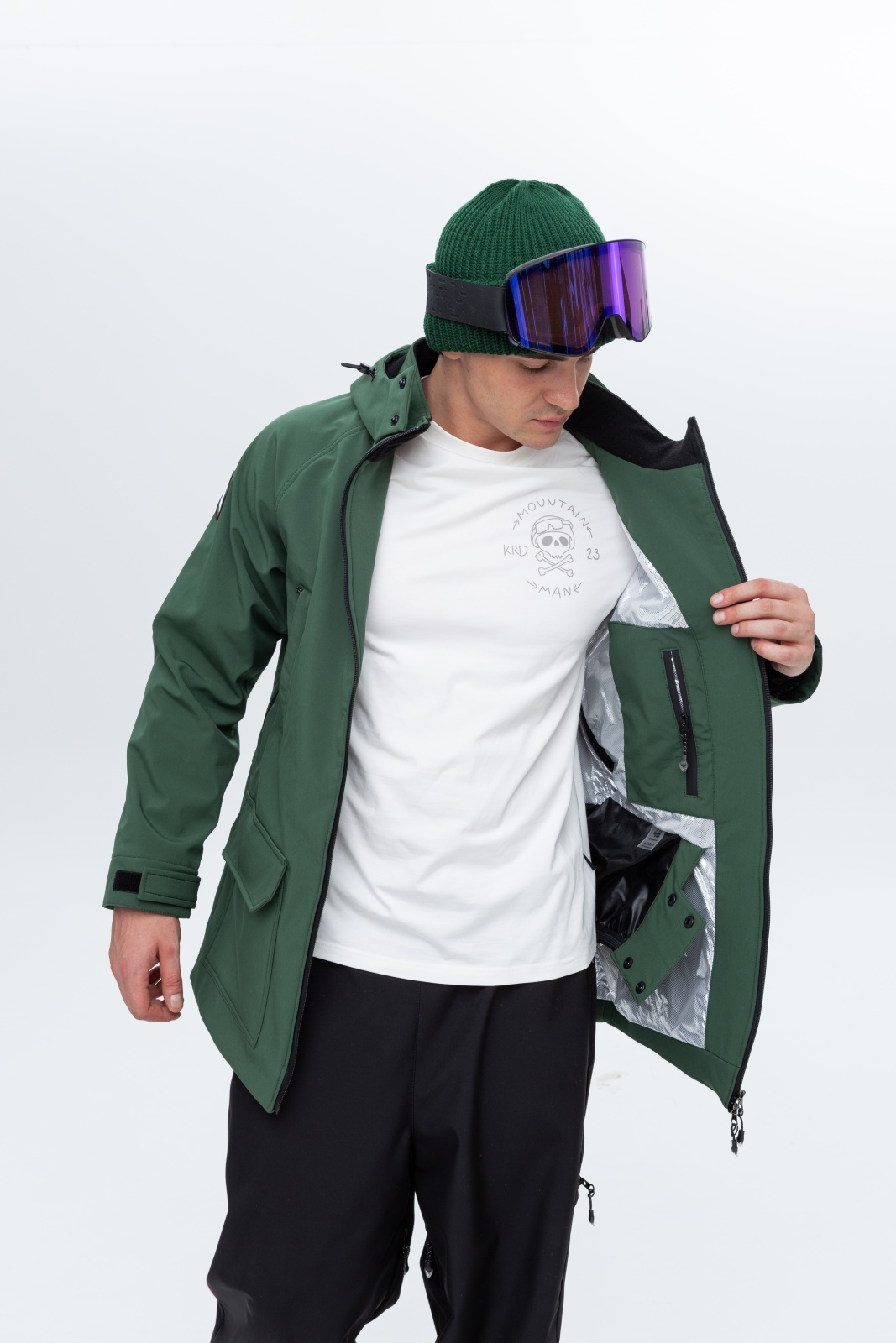Сноубордическая куртка Ranger в глубоком зелёном цвете Lost Island — для тех, кто не ищет лёгких путей. Она создана, чтобы выдерживать — ветра, снег, обледенелые трассы и суровые спуски. Эта модель сочетает уверенный стиль милитари с продуманной защитой от ветра, влаги и холода: мембрана Softshell 10.000/10.000, прочный полиэстер и конструкция, продуманная до мелочей.