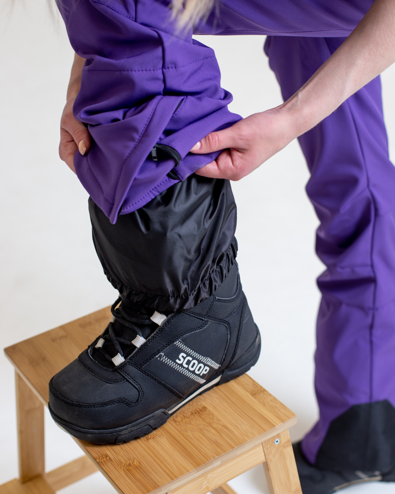 Снегозащитные гетры , вставки из прочной ткани на местах подверженных истиранию.